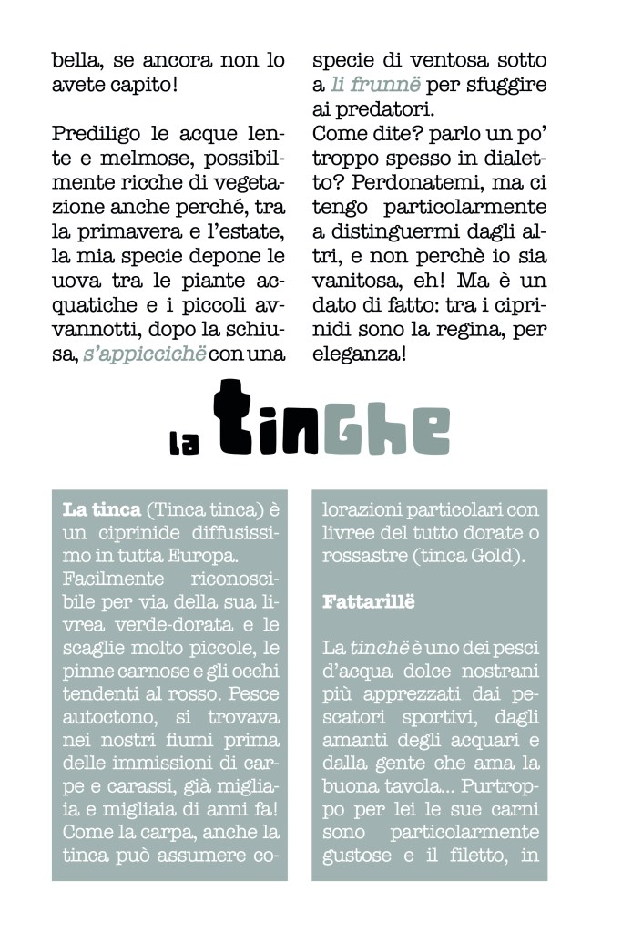 Un libro simpatico pensato per bambini e ragazzi, in cui i pesci d’acqua dolce si raccontano, con tante schede e curiosità, per imparare a conoscerli e rispettarli.