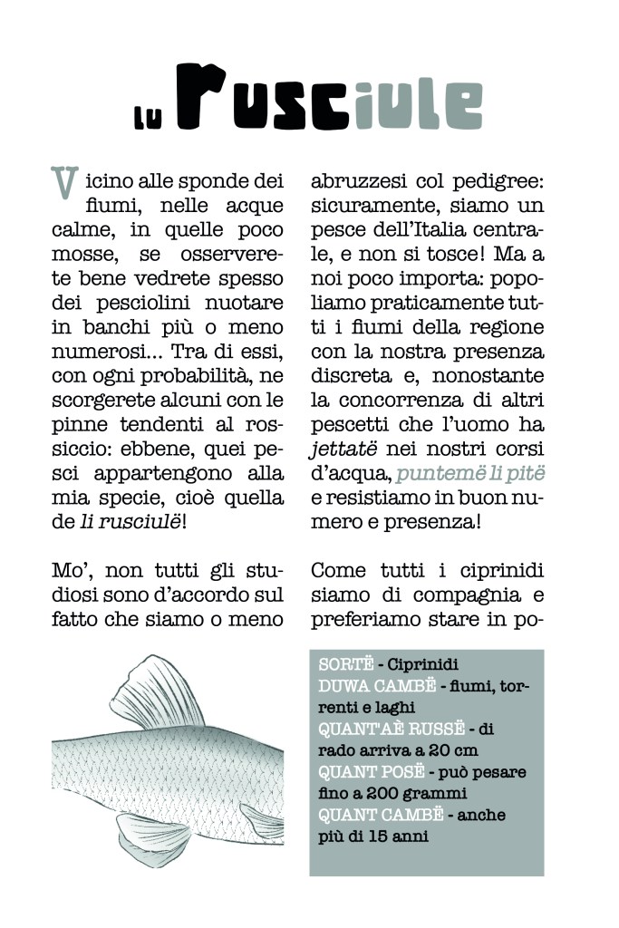 In questo libro ascolteremo ciò che hanno da dire 𝗶 𝗽𝗲𝘀𝗰𝗶 𝗱’𝗮𝗰𝗾𝘂𝗮 𝗱𝗼𝗹𝗰𝗲 dell’Abruzzo tutto d’or, e già questa cosa dovrebbe intrigarvi perché, come si sa, in genere i pesci sono muti!