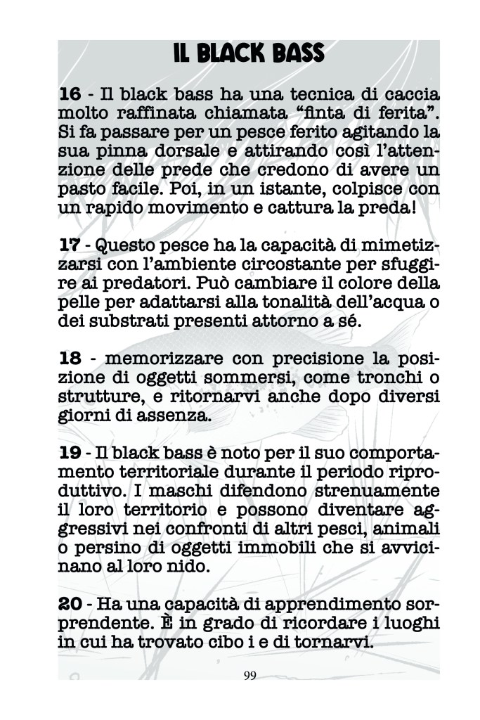 Imparerà ad apprendere autonomamente, entusiasmandosi leggendo le straordinarie vite dei pesci d’acqua dolce! Sì, perché saranno proprio gli amici animali ad intrattenerlo raccontando di sé stessi, condendo la narrazione con fatti buffi, insoliti, curiosità e proverbi… Tutti da ridere e da scoprire!