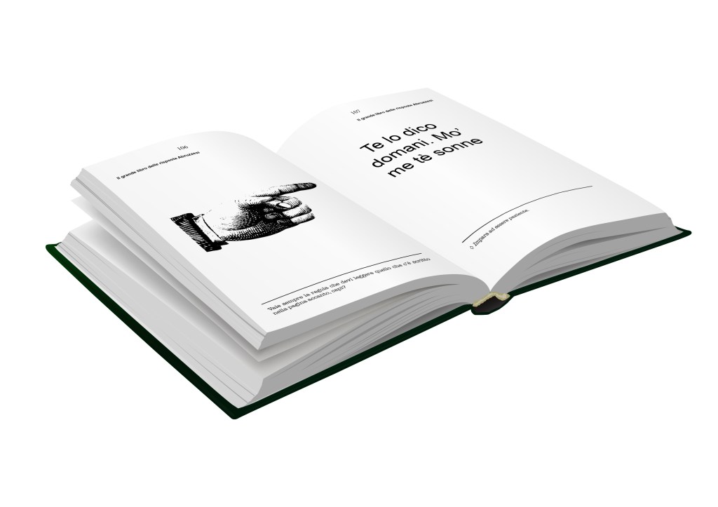 Mo’, di libri delle risposte ce ne sono un’infinità, decilinati in mille salse differenti: ma se c’è una cosa che possiamo dire senza timore di smentita è che la passata fatta in casa, li buttijë d’ pummadorë, in sostanza, sarà sempre più saporita e genuina di quella che troverete sullo scaffale dei supermercati; lo stesso vale per le risposte che troverete in questo libro: sono tutte fatte a mano, vergate da due che se avessero avuto qualche capacità divinatoria, ma vi pare che s’ mettave a fa’ uno l’archeologo e l’altro il redattore? Sancapriè, avremmo giocato al superenalotto, ai cavalli, avremmo dato i numeri al Lotto… ‘nzommë, se pensate che attraverso le pagine di questo volume potrete saperne di più sul vostro futuro, fatecelo sapere perché qualche psicologo bravo lo conosciamo e vi potremmo anche far ottenere lo sconto!