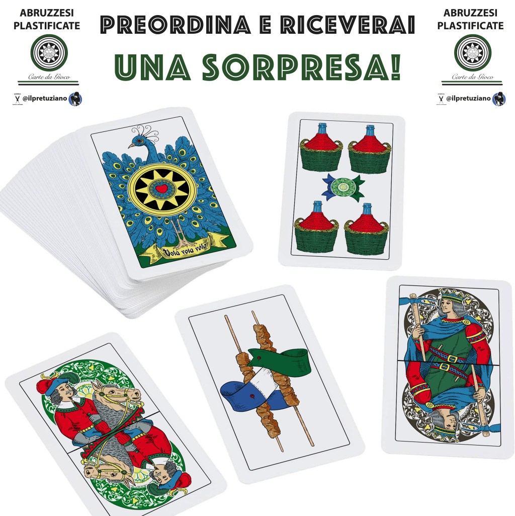 Siccome alle tradizioni ci teniamo non ti preoccupare… Le tue carte arriveranno ben prima di Natale, dapù avoja a jucà a bestia, a fa’ li stuppatellë, li surgitillë, i sette e mezzo e tutti quei giochi che rendono le festività abruzzesi un po’ più magiche!