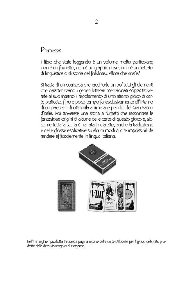 Tra le tante tradizioni un po’ curiose dell’Abruzzo tutto d’or, ve n’è una assolutamente singolare che è legata ad un antico gioco di carte… quello del Cucco o del Cucù che a Montorio al Vomano, per ragioni non del tutto chiare, si chiama “Lo Stu”. Tra folklore, storia e fantasia, le figure riprodotte in questo curioso mazzo dalle origini un po’ misteriose si animano e prendono vita in questa collana a fumetti raccontandoci, a volte in maniera comica, altre con storie un po’ noir, le loro fantastiche origini che si innesteranno, di volta in volta, con alcuni episodi della Storia con la S maiuscola.