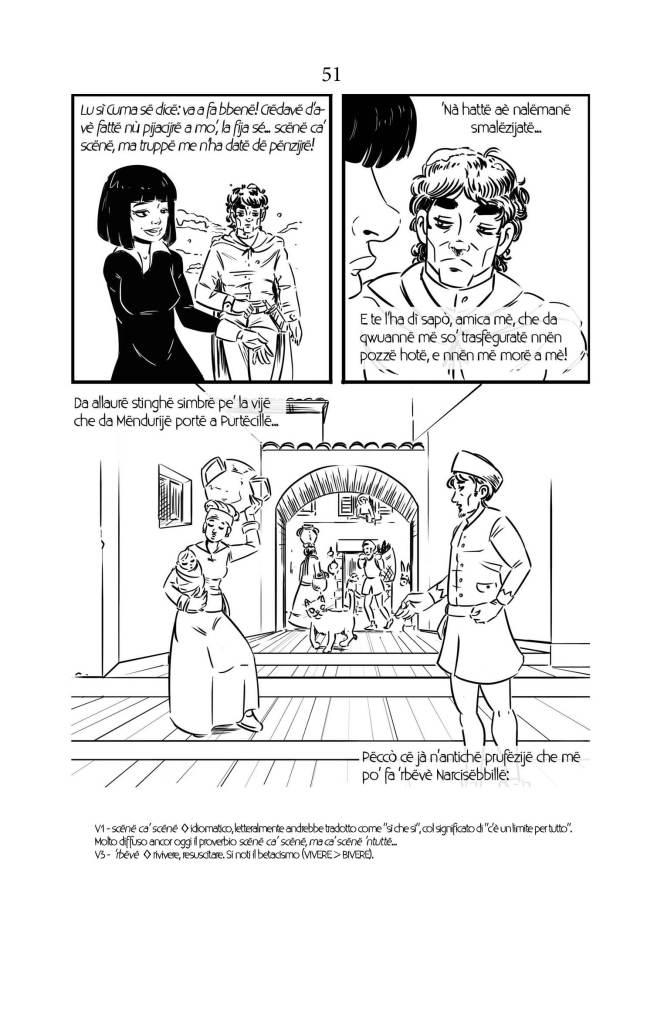 Nel secondo volume troviamo la storia La mmascherë (Quando l’apparenza inganna), nella quale si narrano le fantasiose origini delle figure della Secchia e del Mascherone. La particolarità di questi brevi racconti a fumetti sta nell’essere narrati nel dialetto di Montorio al Vomano, con una resa grafica che, ai parlanti naturali, risulterà certamente di facile lettura. L’intero testo del secondo volume, per quel che riguarda la vicenda a fumetti, è scritto in ottava rima per ricalcare un po’ le vicende raccontate dal Tassoni ne La secchia rapita (alle quali si fa riferimento) ed omaggiare la tradizione dei cantastorie e dei poeti pastori, un tempo così vivida in Abruzzo. L’intero testo è glossato per rendere conto dei modi di dire e delle espressioni idiomatiche e, alla fine del racconto, troverete la traduzione con testo a fronte.