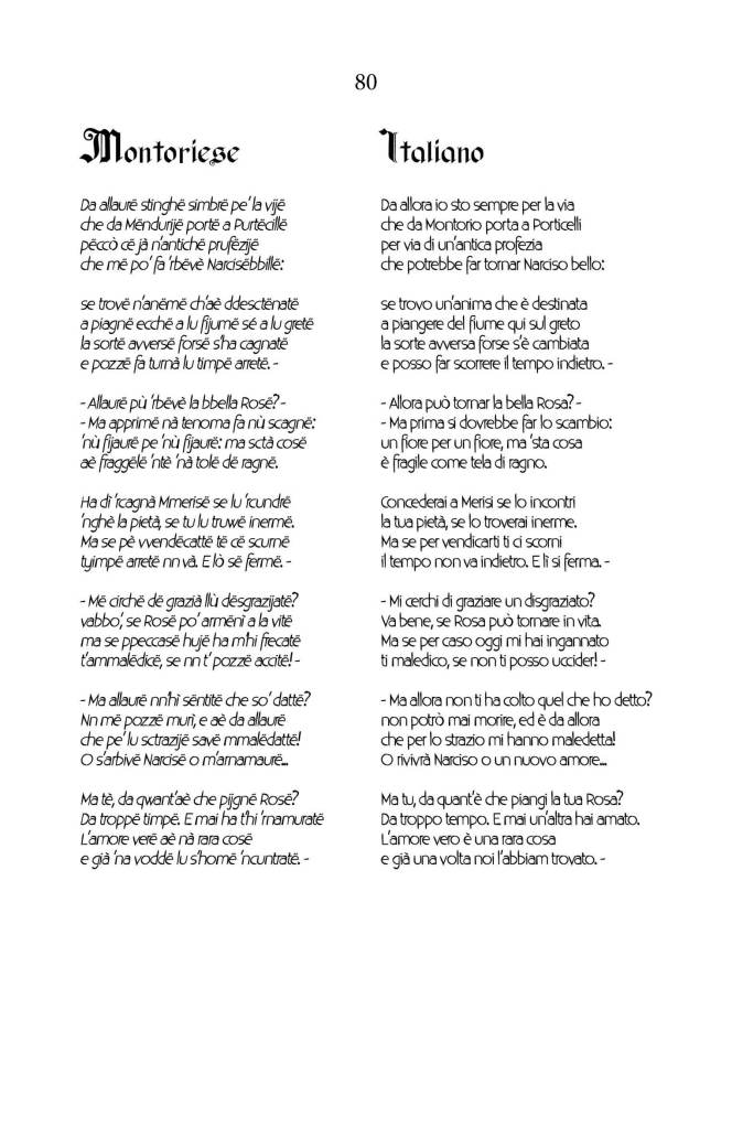 Tra le tante curiosità di questa collana è che è scritta tutta in dialetto ed in versi, per omaggiare la tradizione dei canti a braccio degli antichi pastori… Ma non temete, oltre alle glosse che spiegano le espressioni più controverse o curiose, ogni volume contiene la traduzione del testo con il testo a fronte!